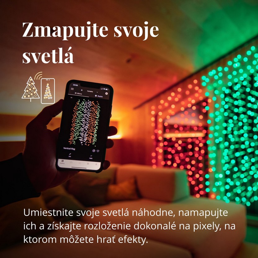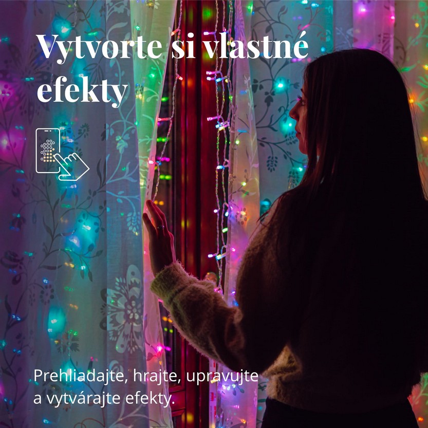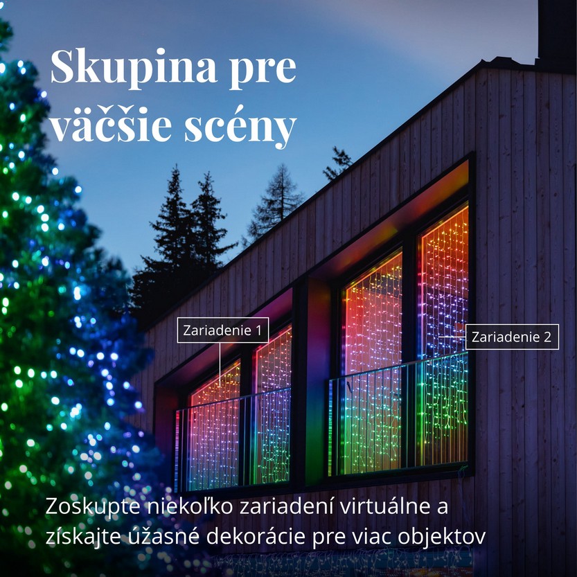 Tento světelný závěs krásně vynikne zavěšený na okně či stěně. Světelný závěs se dá zesynchronizovat s ostatními produkty TWINKLY, což zaručí dokonalou estetickou světelnou show.