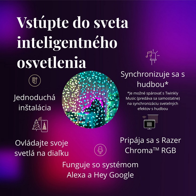 Kompatibilita | Google Assistant, Alexa od Amazonu, Apple HomeKit, kompatibilní se všemi zařízeními Twinkly |
