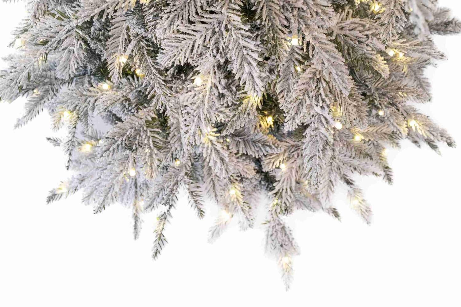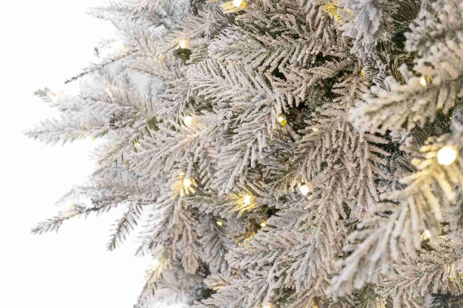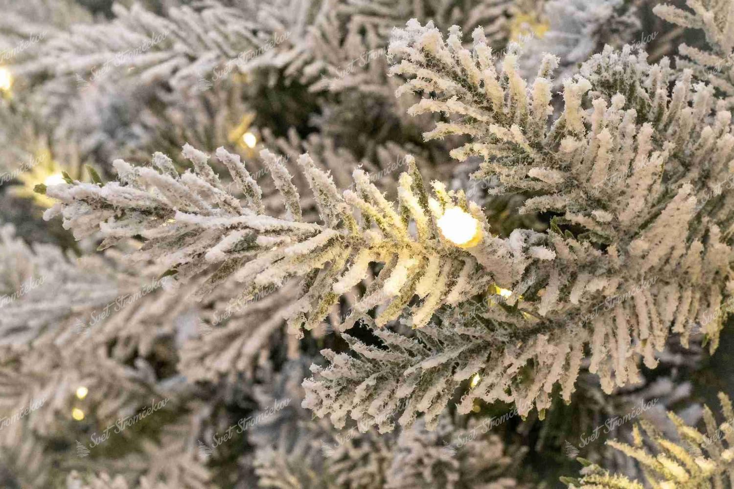 umělý bílý vánoční stromeček 3D, výška 210cm, šířka 100cm, zasněžené jedlové jehličí, typ jehličí 3D (PE) + PVC, provedení – hustý, zasněžený, osvětlení – 370LED, kovový stojan, délka špičky – 20cm, počet částí – 3
