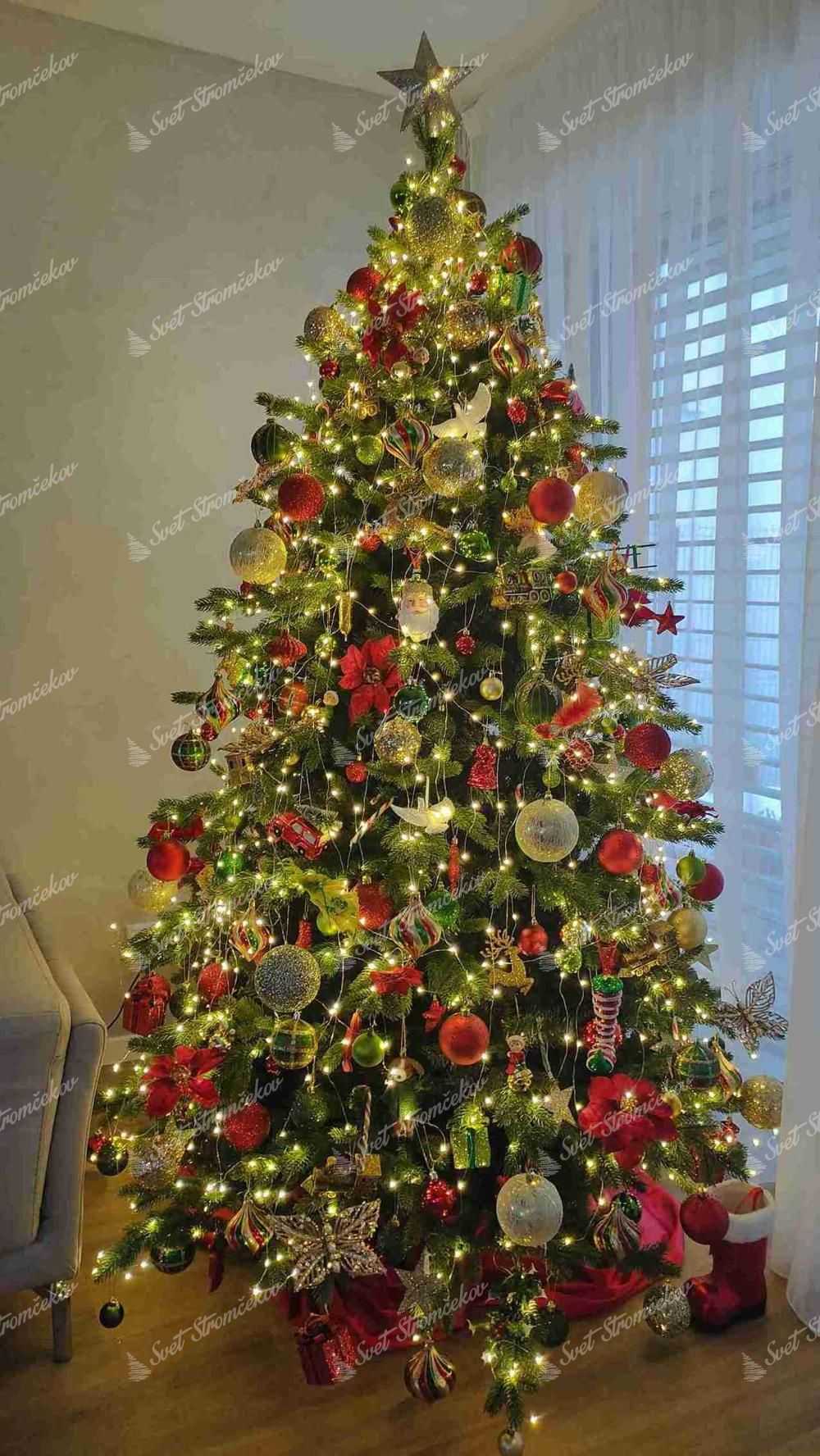 - stromek je uprostřed doplněn o klasické zelené PVC větvičky pro dosažení