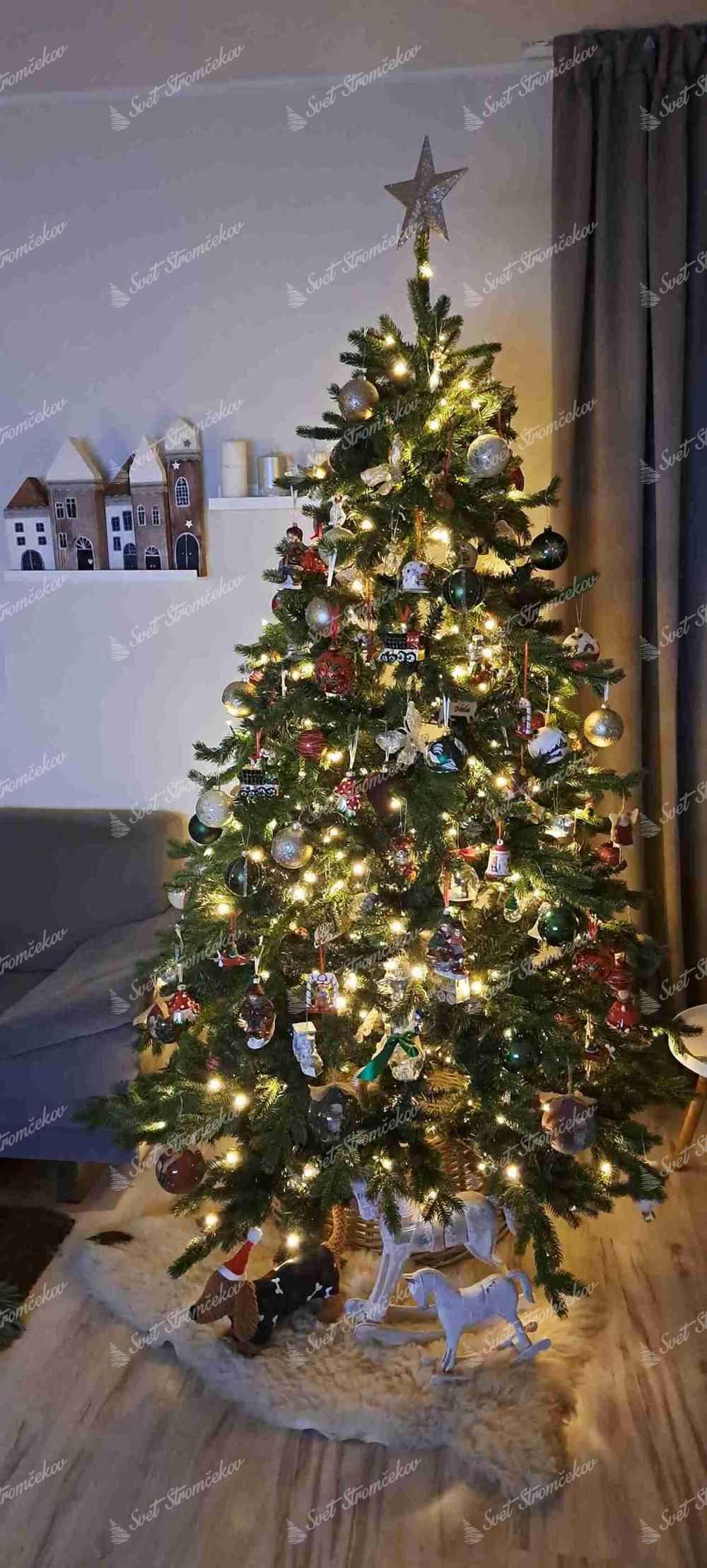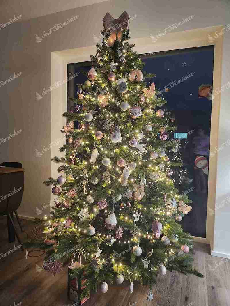 V stromečku je zabudované LED osvětlení teplé bílé barvy. Díky tomu nemusíte ztrácet čas nekonečným věšením vlastního osvětlení na stromeček. Počet LED světélek záleží na velikosti stromku.