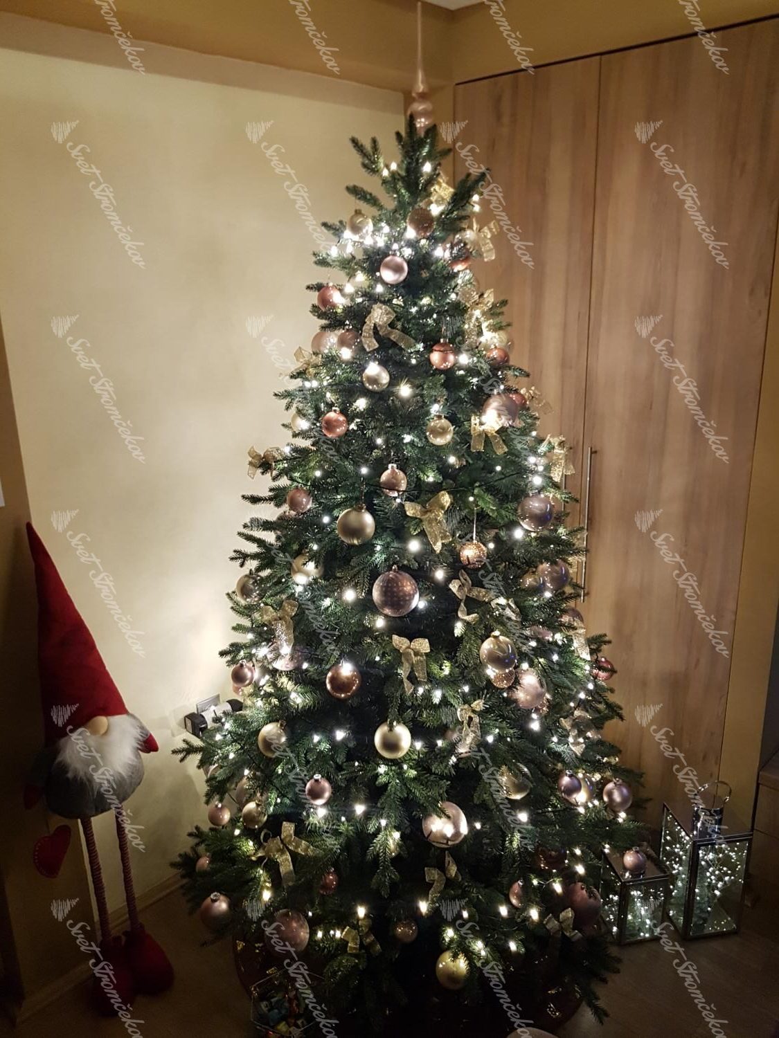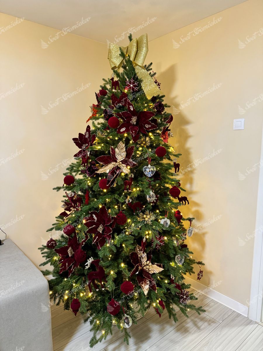V stromečku je zabudované LED osvětlení teplé bílé barvy. Díky tomu nemusíte ztrácet čas nekonečným věšením vlastního osvětlení na stromeček. Počet LED světélek záleží na velikosti stromku.