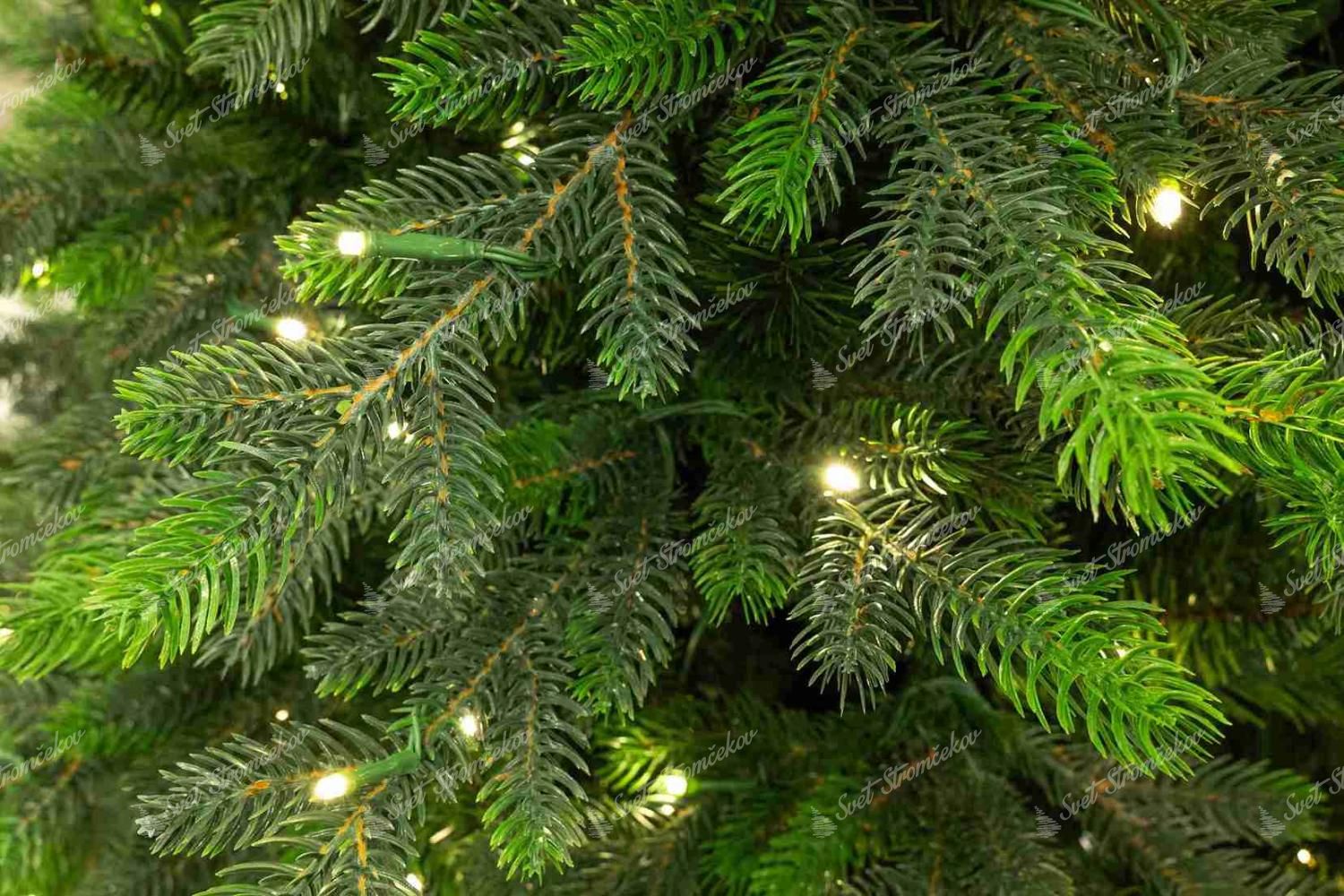 Stromeček má přímo ve větvičkách předmotané LED osvětlení v teplém bílém odstínu s 8 funkcemi svícení. To zajišťuje rovnoměrné rozložení žárovek a proto je skvělou volbou pro ty, kdo chtějí vytvořit krásnou vánoční atmosféru bez námahy a ztrácení času.