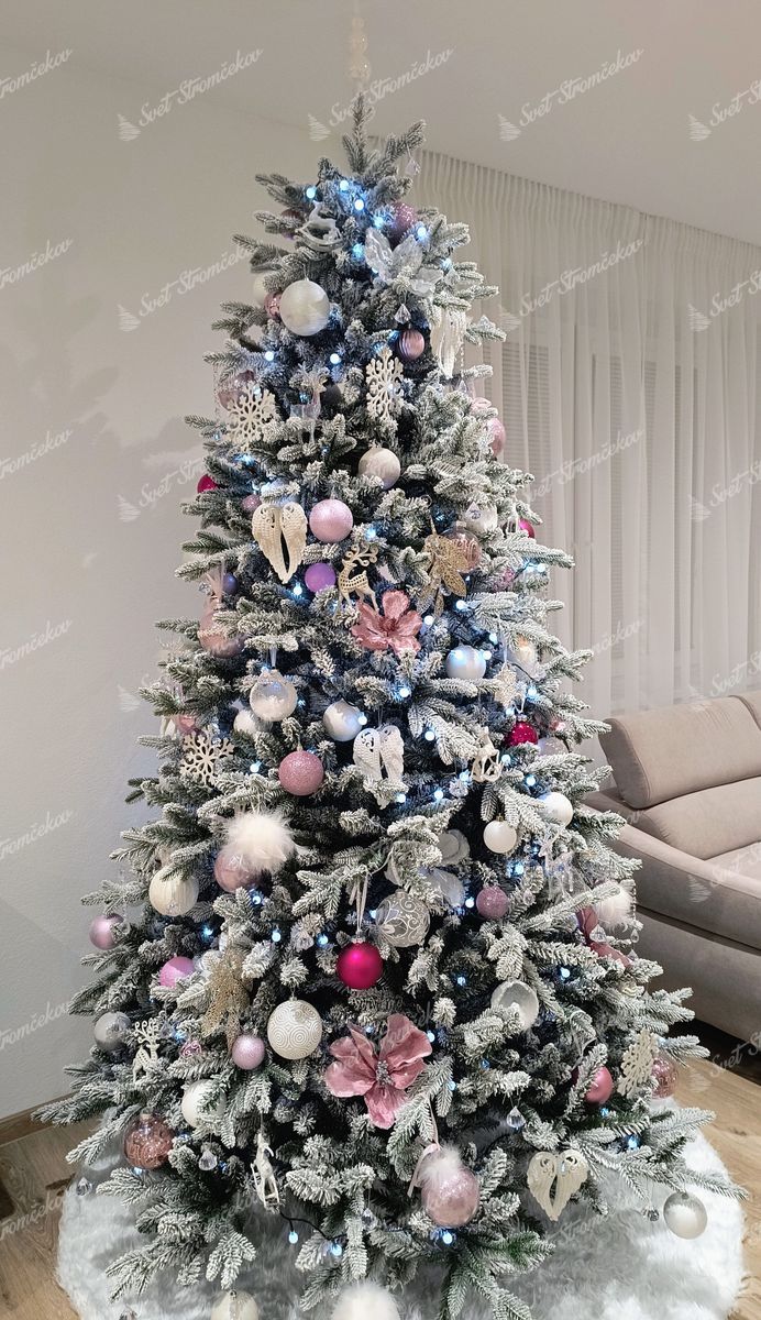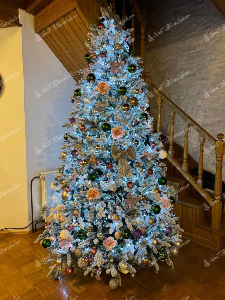 3D jehličí po celém obvodu stromku je doplněno o klasické PVC jehličí, které je hustě zasněžené. Nejmodernější systém aplikování umělého sněhu na stromeček zaručuje, že sníh neopadává. Stromek ma pevnou železnou konstrukci a stabilní kovový stojan, který je součástí balení.