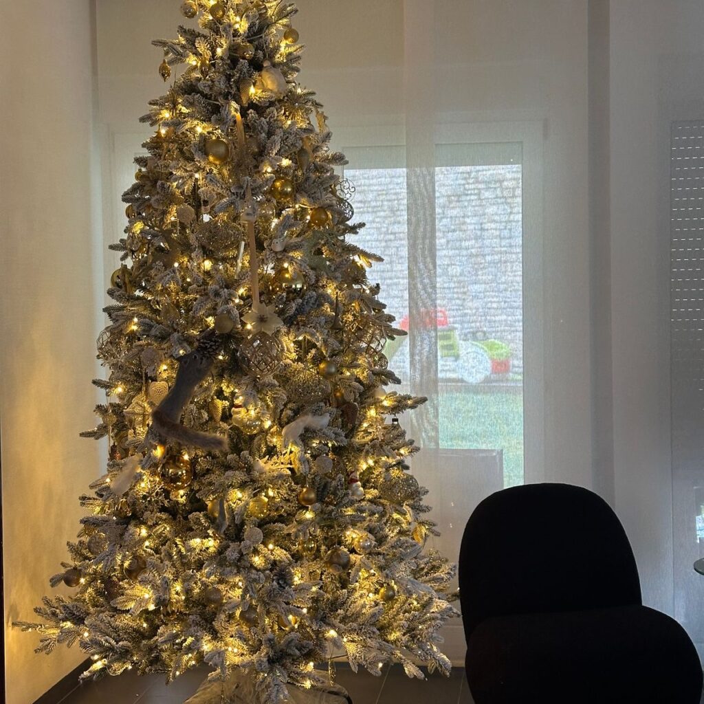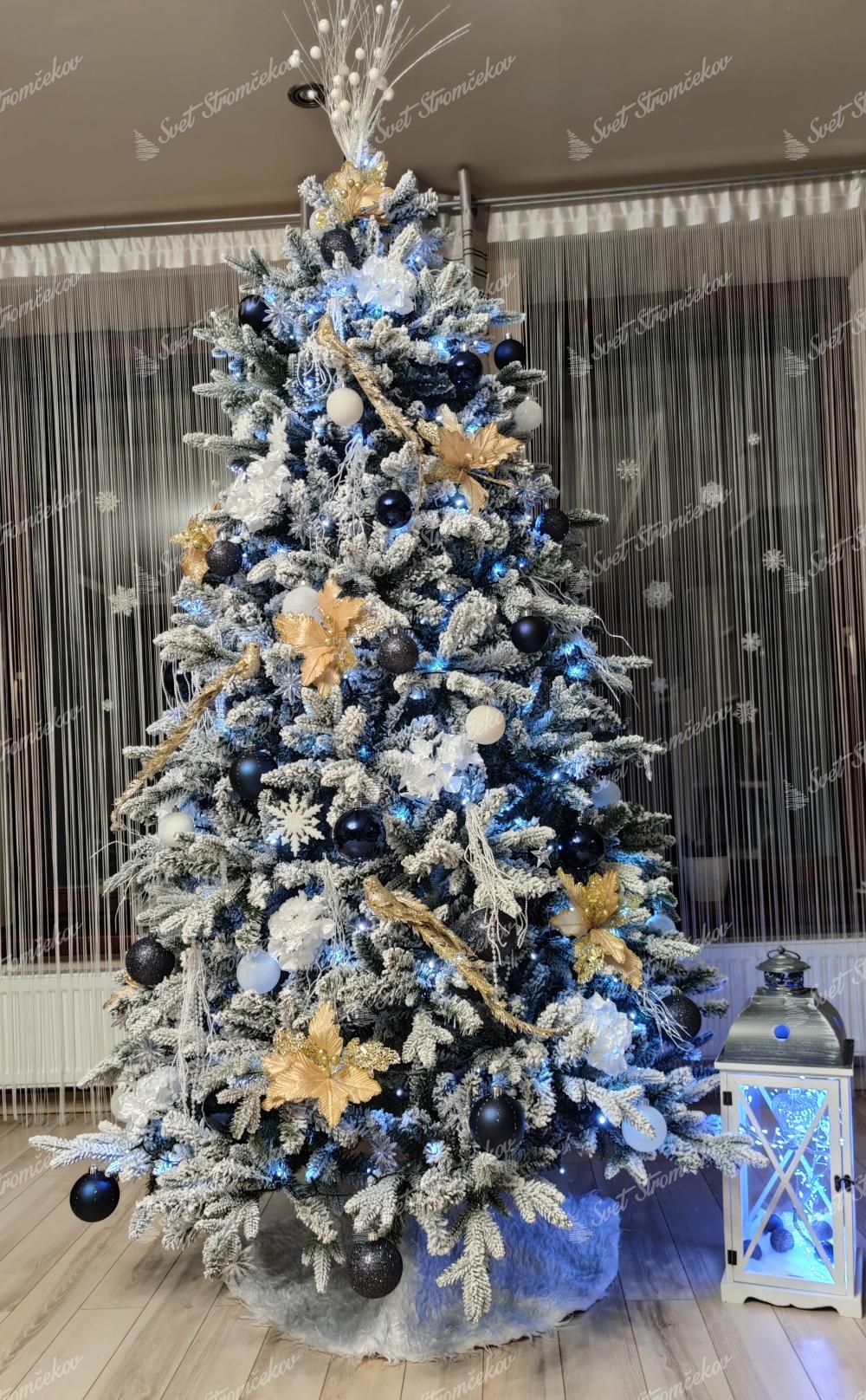 3D jehličí po celém obvodu stromku je doplněno o klasické PVC jehličí, které je hustě zasněžené. Nejmodernější systém aplikování umělého sněhu na stromeček zaručuje, že sníh neopadává.