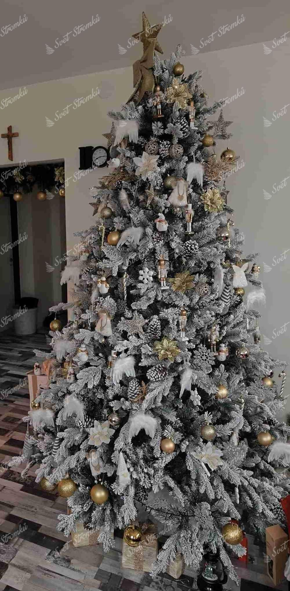 Originální vzhled dodávají stromku i hustě zasněžené šišky, které jsou umístěny na stromku. Stromeček má pevnou železnou konstrukci a stabilní kovový stojan, který je součástí balení. Deštníkový rozkládací systém zaručí, že větvičky vašeho stromku rozložíte na přesně předurčené místo a tak Váš stromek bude mít dokonalý tvar. Vaše Vánoce s ním budou mít tu pravou zimní atmosféru.