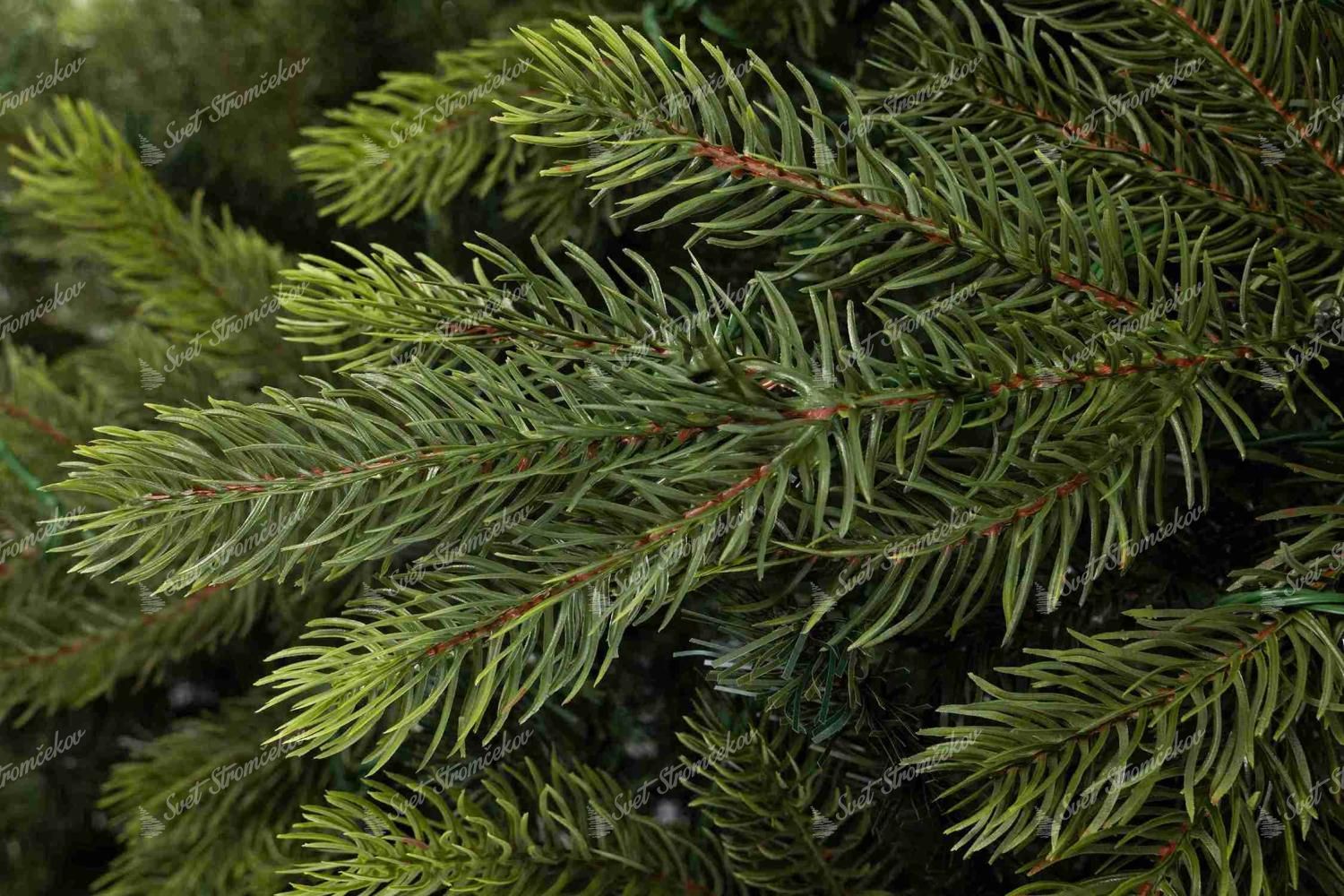 Střed stromku je zahuštěný klasickým tmavším PVC jehličím, díky čemuž má dokonale hustý vzhled. Tato barevná kombinace vypadá velmi přirozeně a realisticky. Předností tohoto stromku je také velký počet větviček.