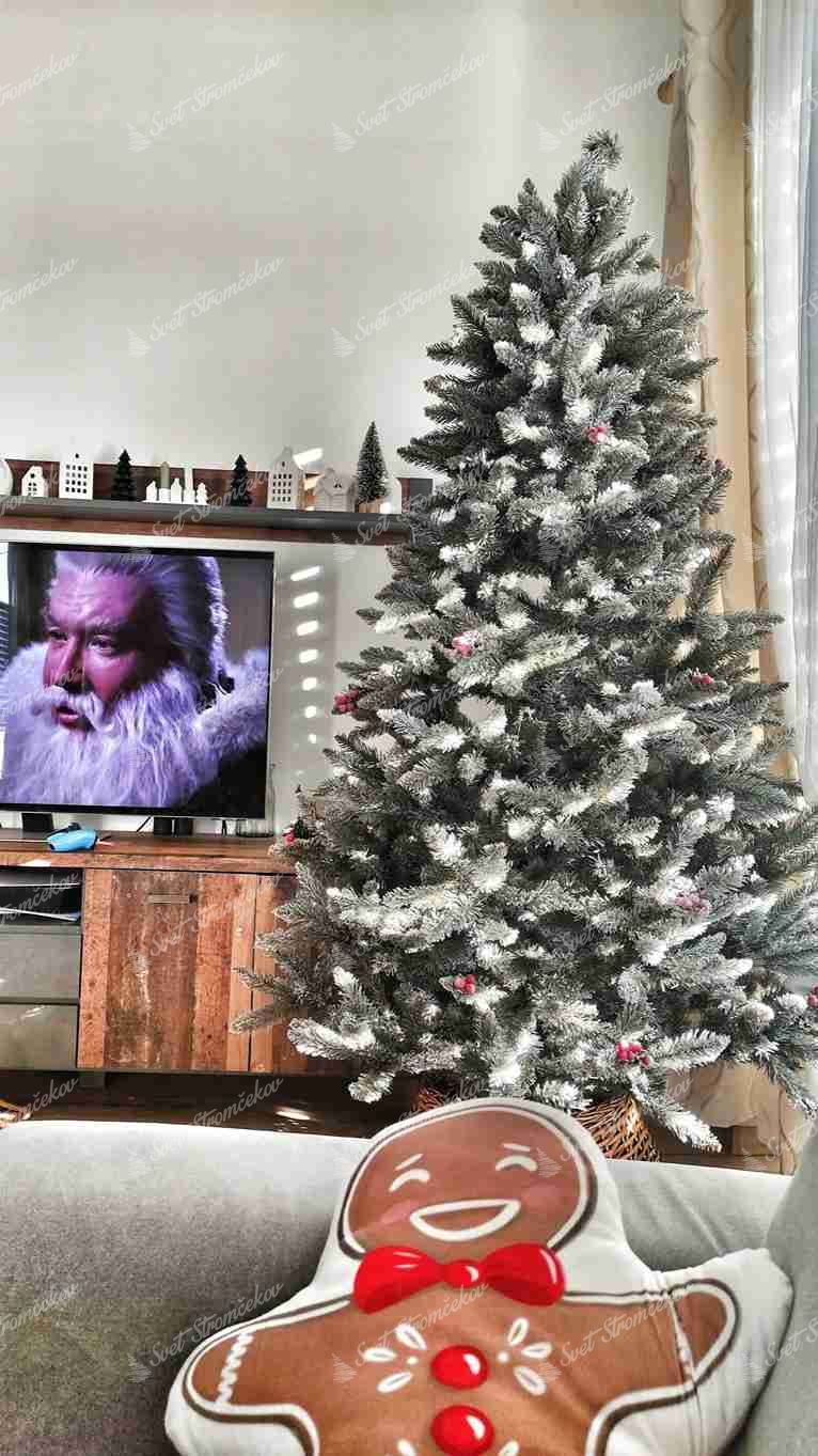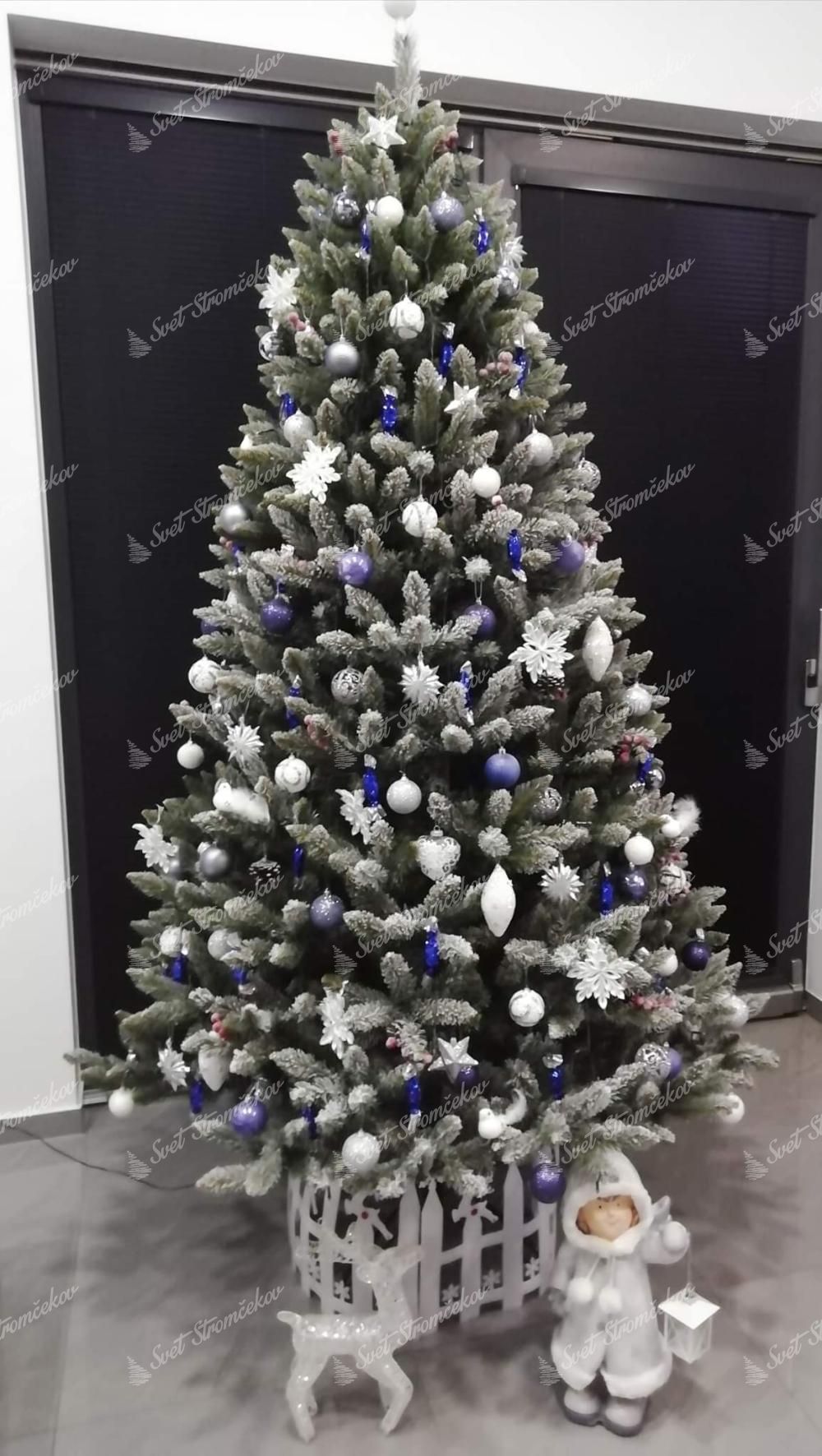 Smrk Kryšťálový je NOVINKOU sezóny 2019. Vyznačuje se propracovaným úzkým tmavozeleným PVC jehličím které je pokryto jemnými bílými chomáčky připomínajícími krystalky ledu. Větvičky jsou na koncích doplněné o pravé šišky a lesní plody, které stromku dodávají dokonalý realistický vzhled.