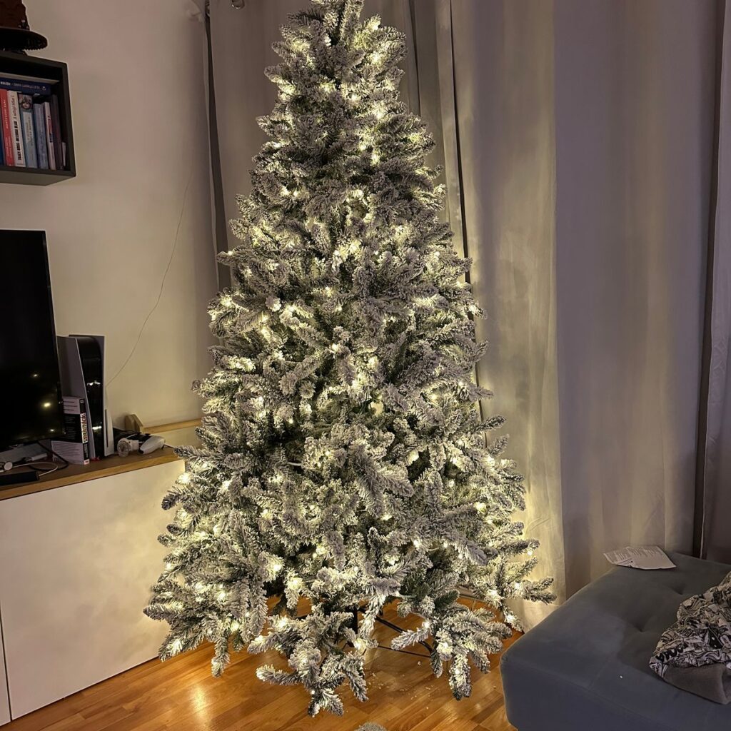 - přirozeně zelený smrk s hustě zasněženými konci větviček