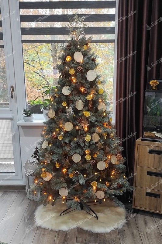 Celý stromek je vyrobený z kvalitních PE a PVC materiálů. Součástí balení je i stabilní kovový stojan. Deštníkový rozkládací systém zajistí dokonalý tvar stromku.