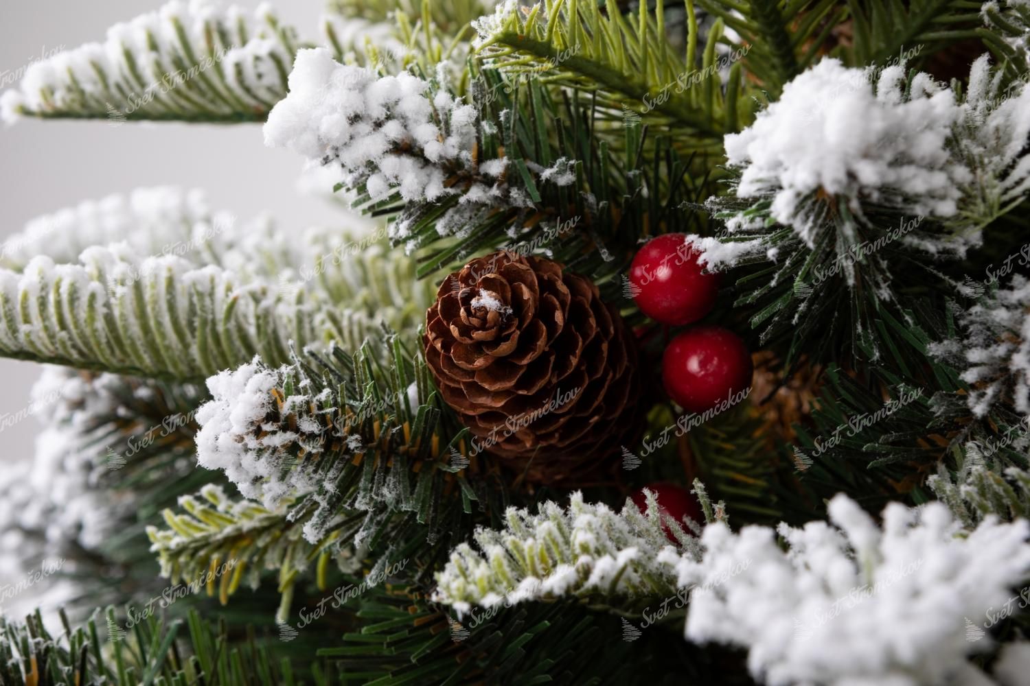 Tento stylový ministromek se vyznačuje zasněženými větvičkami po okrajích celého stromku. 3D jehličí je doplněné i zasněženými šiškami a lesními plody, díky kterým má stromek nádherný tradiční vzhled. Kromě 3d jehličí je stromek doplněný klasickým PVC jehličím, které je také na koncích větviček zasněžené, čímž dokonale imituje živý zasněžený stromek.