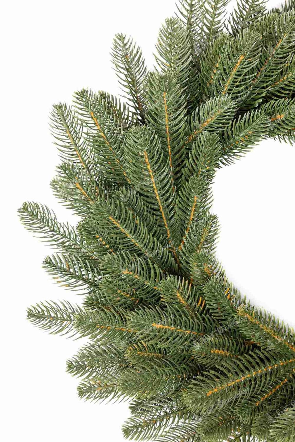 Moderní vánoční věnec 100% 3D Jedle Kanadská je vytvořen z realistických 3D větviček zelené barvy, které jsou k nerozeznání od živé chvojí.